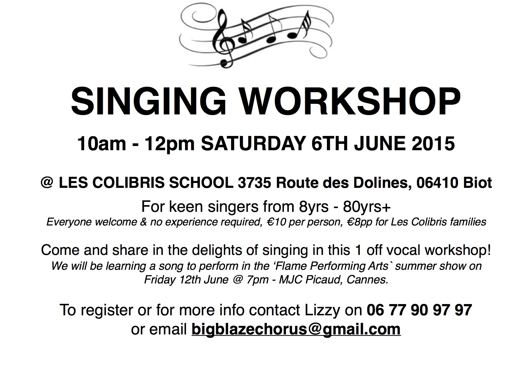 Sat 6th June – Singing Workshop POSTER